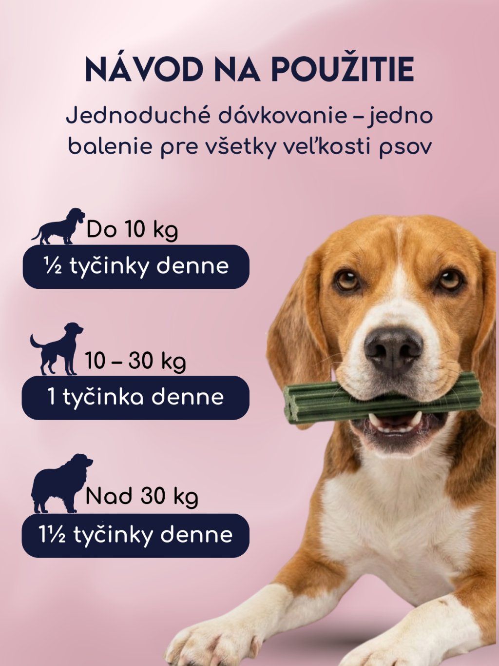 Silnejší 2-krokový zásah pre psí chrup. Keď samotný prášok nestačí — kombinácia denného powder a funkčných tyčiniek pre intenzívnejší efekt.