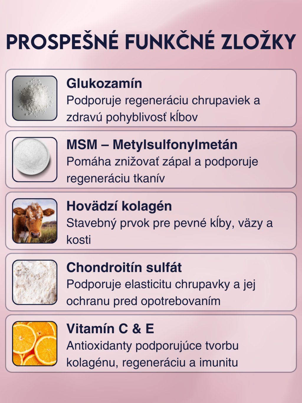 5 aktívnych látok pre kĺby, chrupavky a regeneráciu — nie len glukozamín samotný.