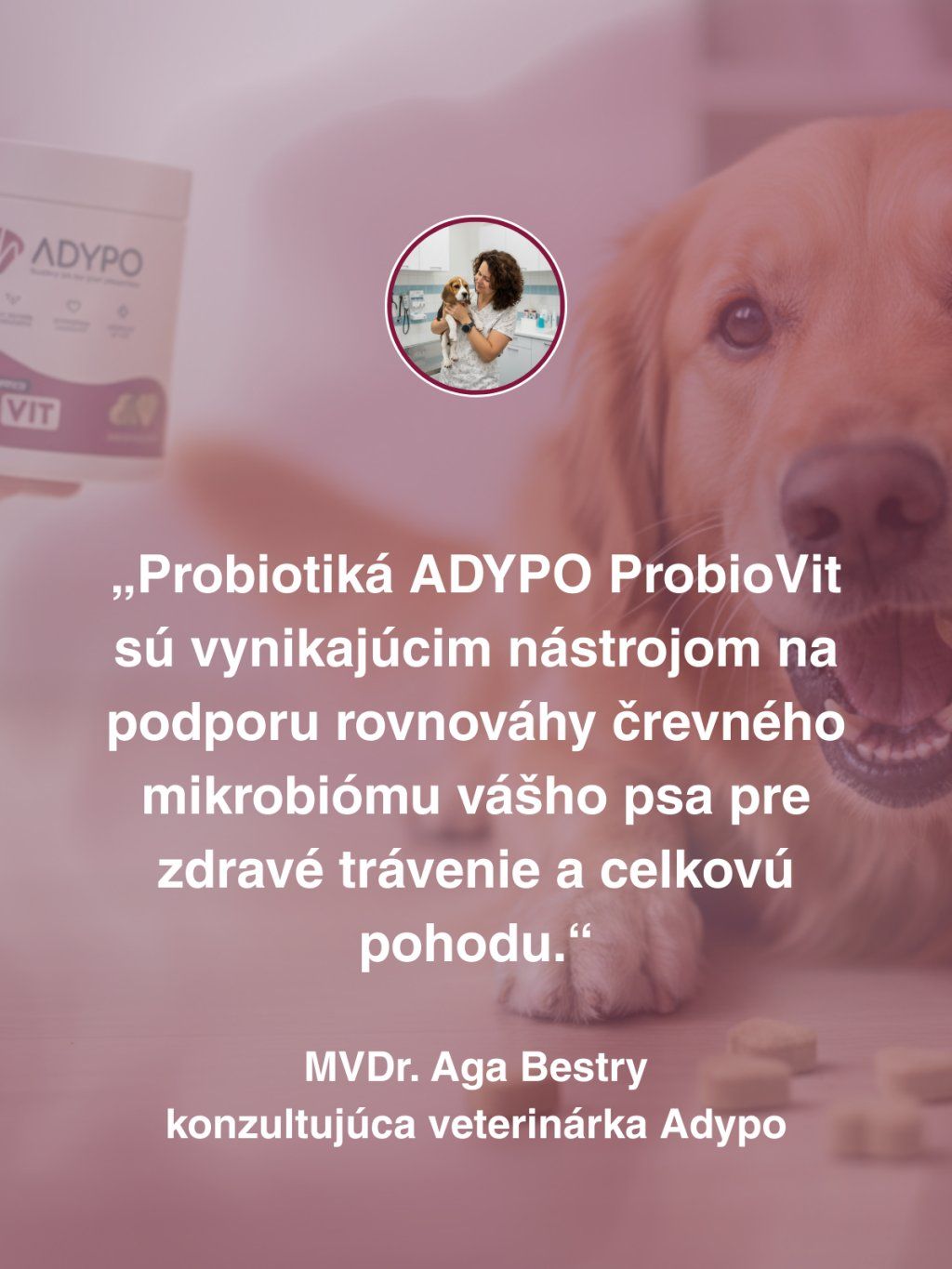 „Vyvážená črevná mikroflóra zohráva kľúčovú úlohu v trávení, imunite aj celkovej kondícii psa. Kvalitné probiotiká odporúčam ako súčasť prevencie aj podpory trávenia."